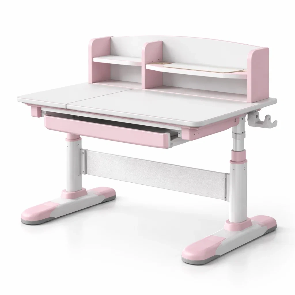 Bureau pour enfant réglable en bois et métal rose et blanc