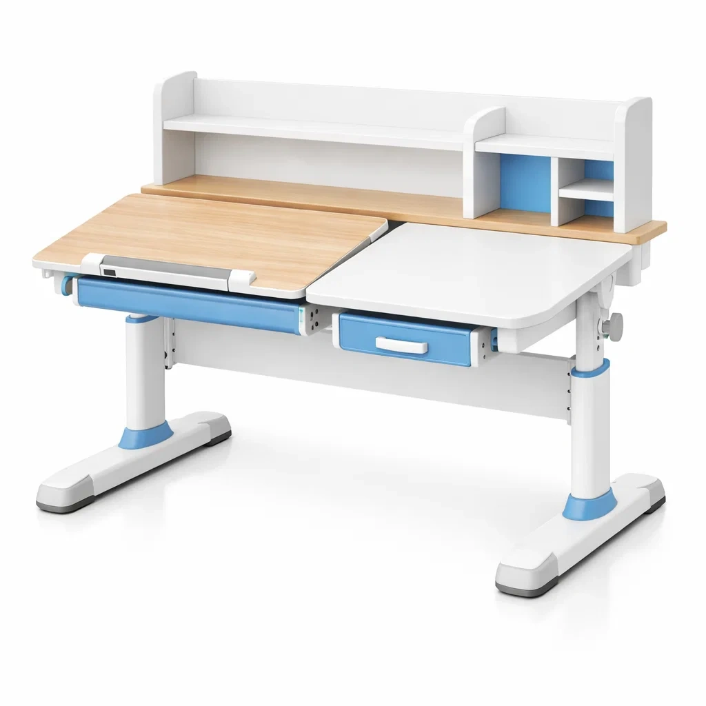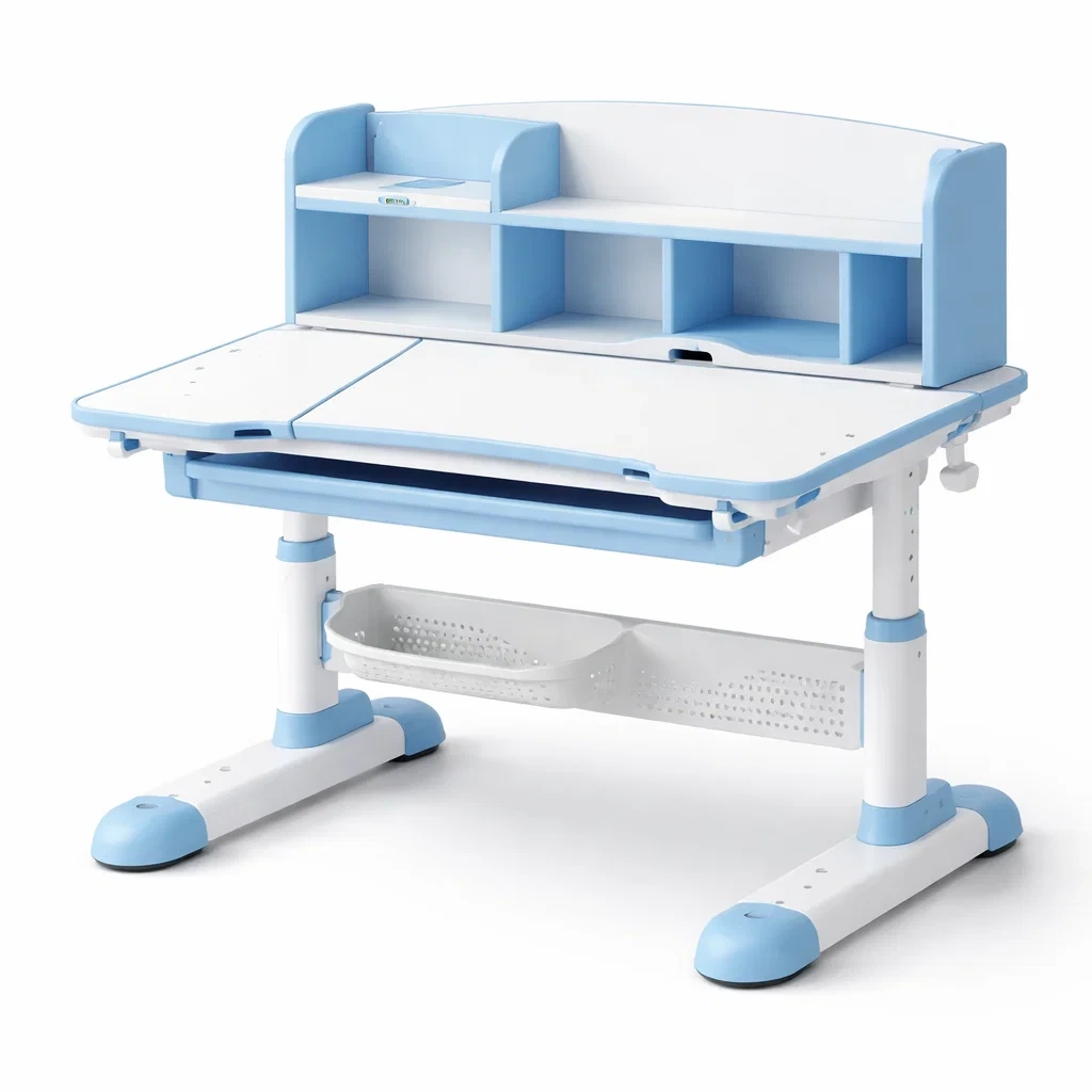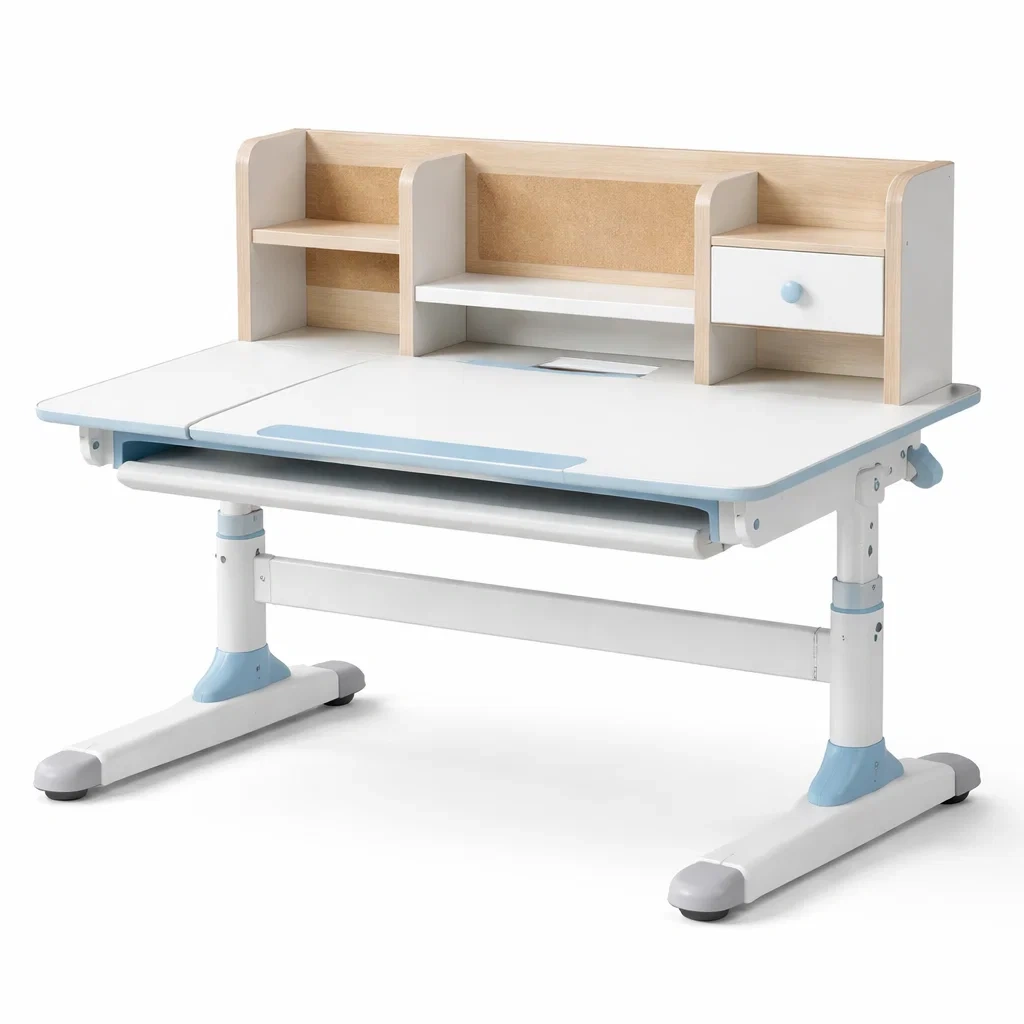 Bureau pour enfant réglable blanc et bleu avec rangement