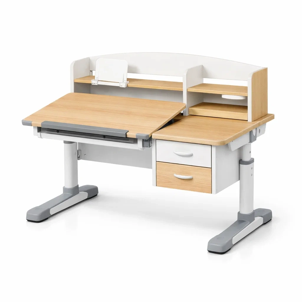 Bureau pour enfant réglable en bois blanc et chêne avec plateau inclinable